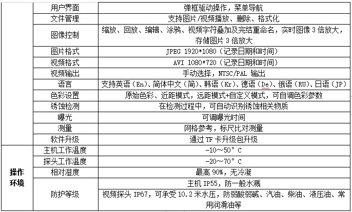 此外,該款便攜式視頻內窺鏡設備采用機械360°搖桿技術,內窺鏡插入管可更換結構,有直徑2.2mm、2.8mm、4mm、6mm直視/紫光/雙攝像頭等內窺鏡鏡頭,讓您可以按需選擇,一機多管,以最優的價格獲得最佳的搭配組合,以適應多種工況環境。