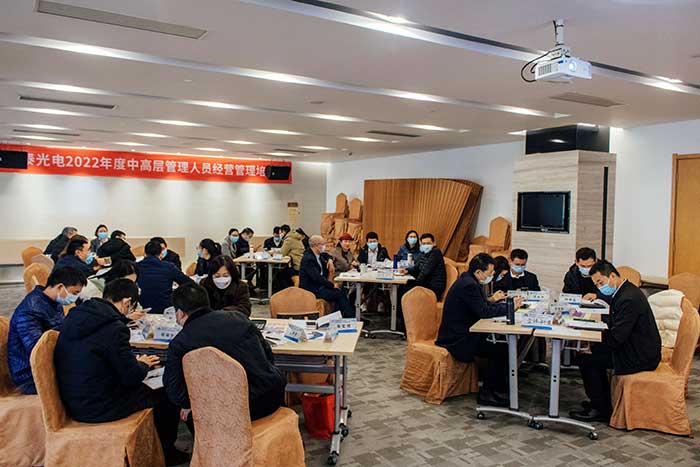 2022年2月25日為期一天的亞泰光電2022年度中高層管理人員企業經營管理培訓營取得圓滿成功,參訓對象為公司中高層管理人員及部分骨干人員。鑒于上一期企業經營管理沙盤模擬培訓取得的良好效果及學員們的高度認可,大家意猶未盡,本次培訓我們再次有幸邀請到了具有豐富授課、實踐經驗的李焱老師為大家授課。