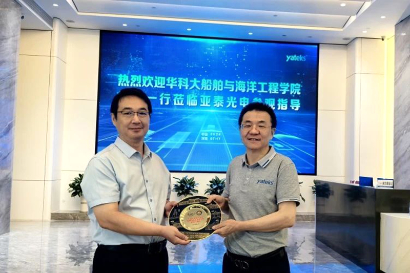 近日,華中科技大學船舶與海洋工程學院黨委書記顧國強、院長李威攜多名專家及教授蒞臨深圳亞泰光電考察交流。深圳亞泰光電總經理鄭翔及公司部門負責人出席座談會。