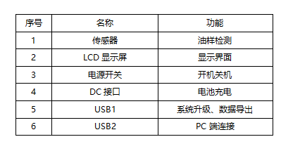 設備主要由高性能ARM處理器、鐵磁性傳感器、5寸觸摸屏、USB接口、內置電池等組成。只需要在油樣瓶內部裝入2mL的油樣,方便、快速、穩定的測量出潤滑油中磨損鐵磁性顆粒濃度。以簡單的方法實現科學的按質換油,查看機械設備的磨損烈度變化趨勢,及時發現設備故障。